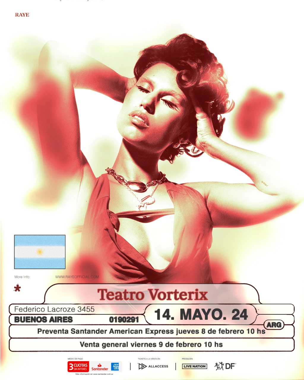 Rachel Keen, mejor conocida como RAYE, es una de las estrellas más radiantes del panorama musical actual. Con siete singles en el top 20 y tras realizar más de 130 conciertos en 2023, confirma su “M21CB World Tour 2024” y confirmó que realizará sus primeros shows en Australia y Sudamérica, donde pisará por primera vez tierra argentina el 14 de mayo en el Teatro Vorterix. El show será producido por DF Entertainment.
