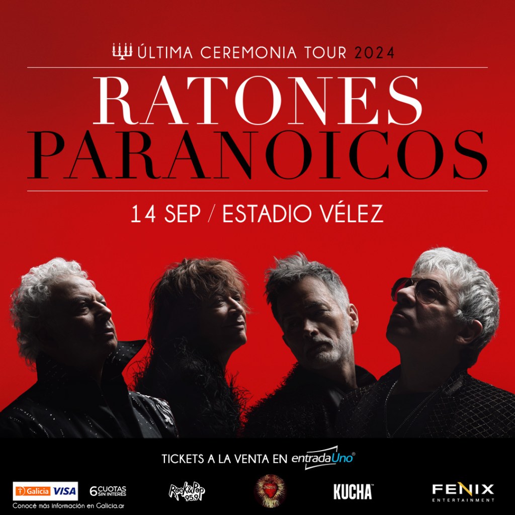 En apenas un día Ratones Paranoicos agotó las entradas de la preventa para su show del sábado 14 de septiembre en el Estadio Vélez. Con producción de Fenix Entertainment este concierto será para coronar su «Última Ceremonia Tour», con el que marcan la vuelta de la banda a los principales escenarios.