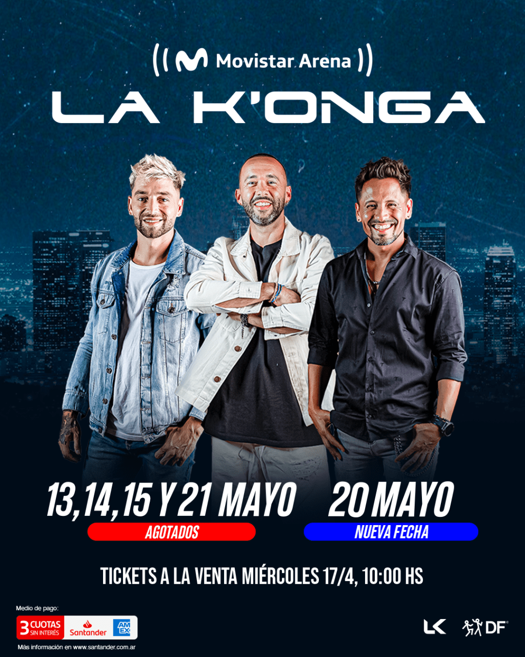 Producido por DF Entertainment, las entradas para esta cumbre cuartetera se podrán adquirir únicamente a través de la página del Movistar Arena. Acepta todos los medios de pago y en 3 cuotas sin interés con Santander American Express.