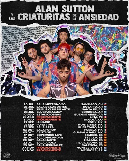 Entre las fechas más destacadas fuera del país se encuentra su regreso a Santiago, Lima, Bogotá y México, donde en 2023 lograron dos sold outs consecutivos. Este año, el desafío es mayor, ya que se presentarán el 22 de septiembre en el renombrado Lunario del Auditorio Nacional en Ciudad de México. Además, por primera vez, Alan Sutton y las criaturitas de la ansiedad llevarán su música al viejo continente, con actuaciones en Madrid, Sevilla, Málaga, Barcelona y Valencia.