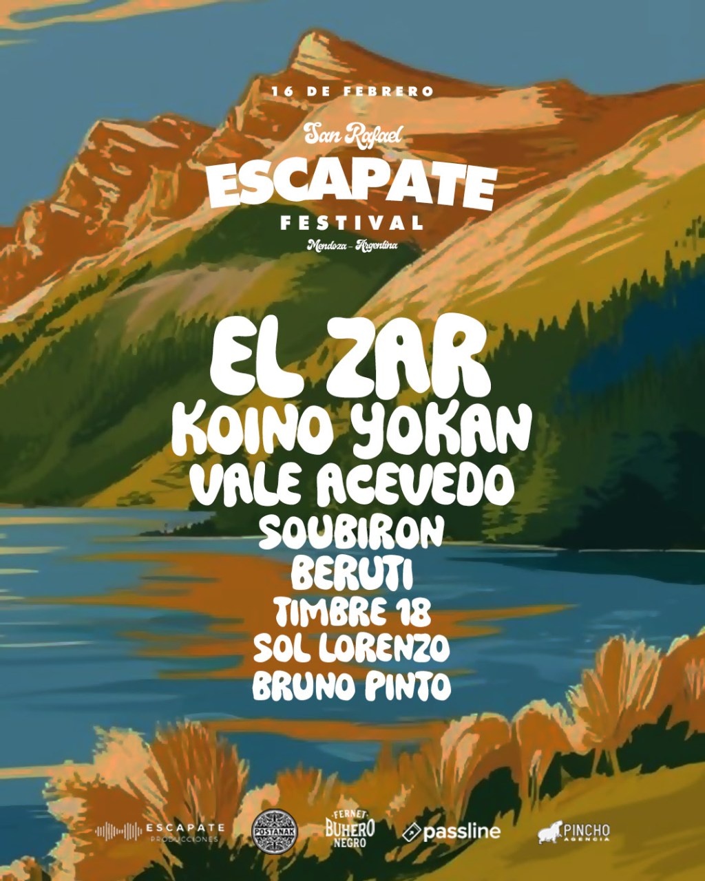 El line up de Escapate Festival es prometedor. Tendrá la participación de los principales artistas de la escena actual como El Zar, Koino Yokan, Vale Acevedo y lo mejor de la escena emergente, como, Beruti y Soubirón, entre otras bandas.