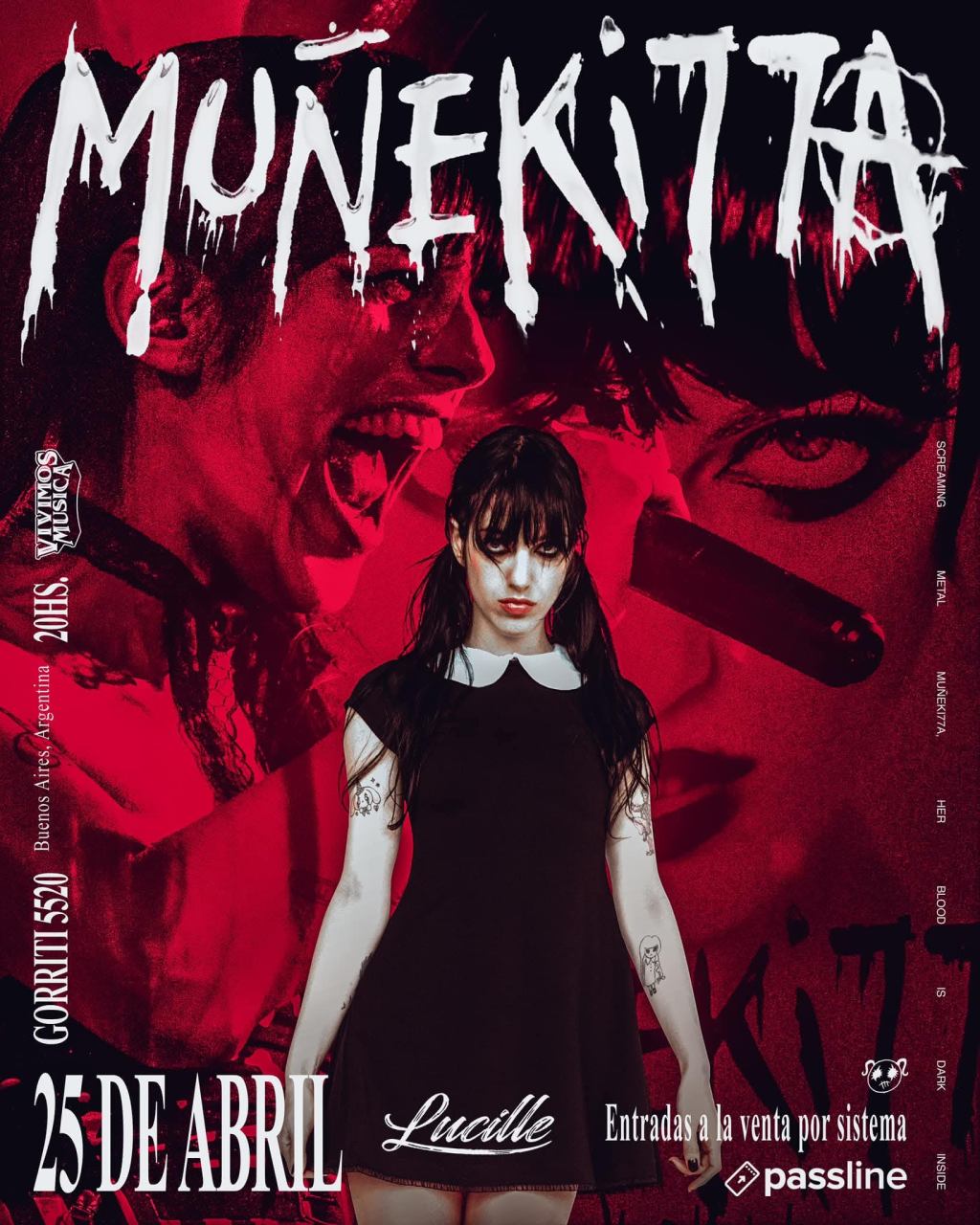 La artista argentina de nü metal MUÑEKI77A se prepara para una noche explosiva, donde presentará su potente propuesta musical el 25 de abril en la sala Lucille.